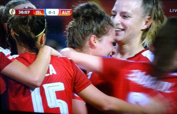 Dass dies alles von einer eintönigen männlichen ORF-Moderatorenstimme begleitet worden ist, die dem Fernsehpublikum mehrfach erklärte, dass die eine isländische Spielerin im Februar zum zweiten Mal Mutter geworden ist, die Spielerin Feiersinger die Tochter des erfolgreichen Ex-Nationalteamspielers sei, „gute Gene!“, und sie als Isländerin „Wolfgangsdottir“ hieße, richtet sich von selbst. Fußball-Österreich feiert einen großen Erfolg. Gruppensieg bei der UEFA-Euro der Frauen in den Niederlanden und Aufstieg ins Viertelfinale: Die Österreicherinnen besiegten die Isländerinnen klar mit 3:0. Hu!